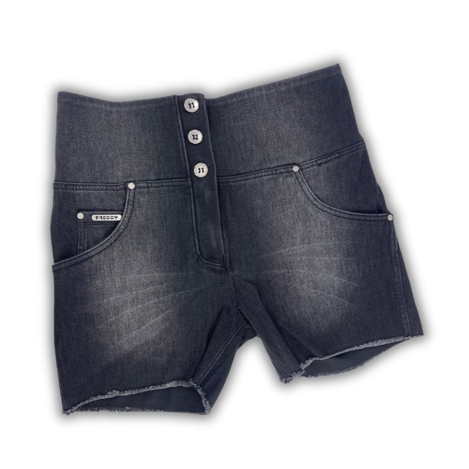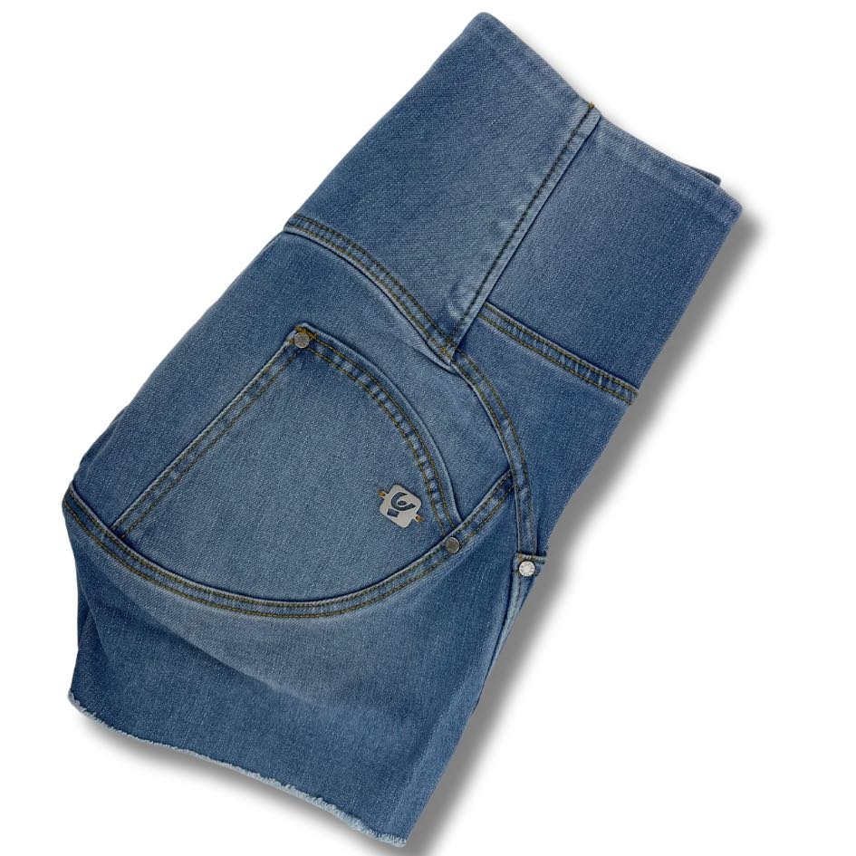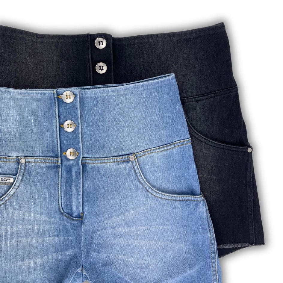 Freddywear WR.UP® push up shorts in eco-friendly shuttle-woven denim with fringed bottom, for a look with lived-in effect