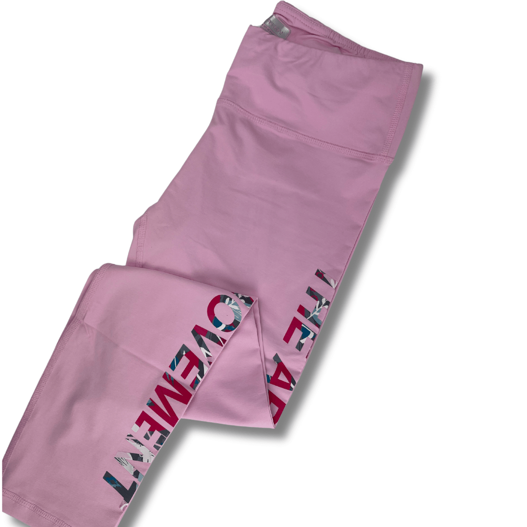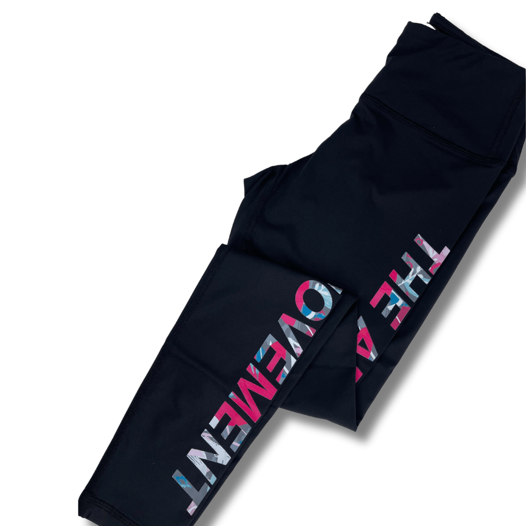SuperFit shaping leggings with 7/8 length at the ankle. Made of breathable technical fabric and decorated on the side of the leg with a vertical “The Art Of Movement” lettering print with floral texture. The model has a high waist with an internal pocket and vertical silver reflex graphics at the bottom of the leg.