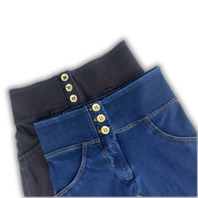 These WR.UP® trousers are designed with soft tencel fabric, offering comfort and a denim look. The mid waist silhouette and 3 buttons are combined with WR.UP® patented push up technology for a flattering, shape-enhancing fit.