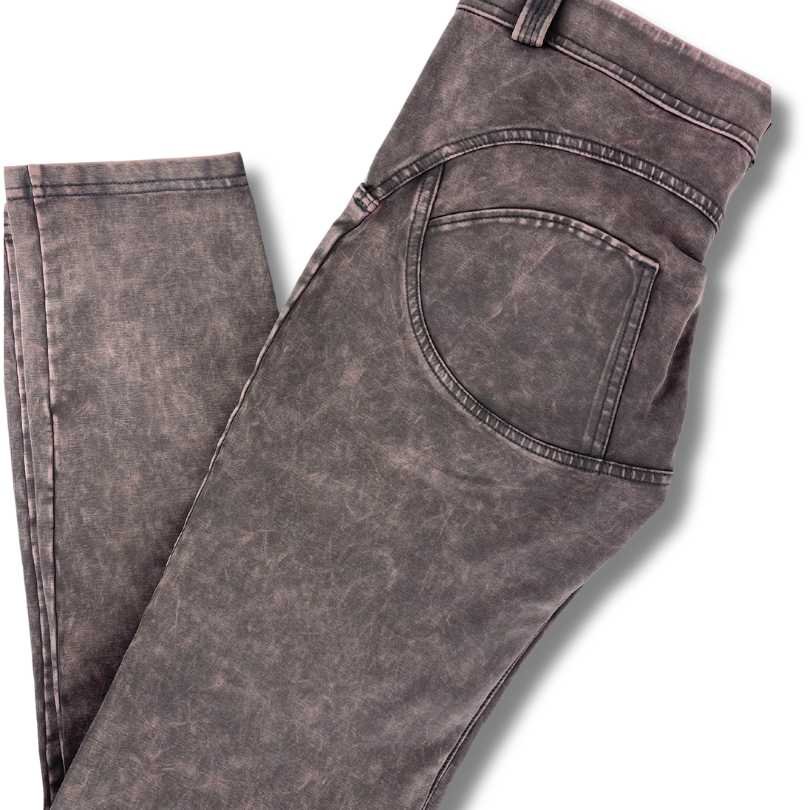 Garment-dyed WRUP trousers in organic heavy weight stretch jersey regular waist skinny tab on the rear right pocket